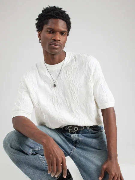 Carlo Colucci Majica Eschfaller slonovina / svetlo siva / temno siva