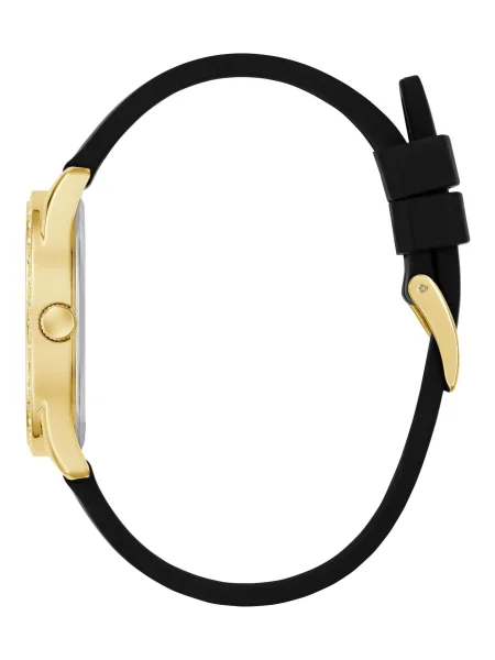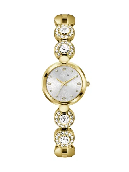 Guessove ženske ure nastopajo kot odločen modni aksesoar, kjer prevladujejo izrazit logotip in oblikovni poudarki, ki gledalcu povedo več kot besede. Stil pogosto igra z bleščečimi okvirji in okrasnimi bezeli, zato so modeli videti kot droben kos nakita, a obdržijo funkcionalnost ure.