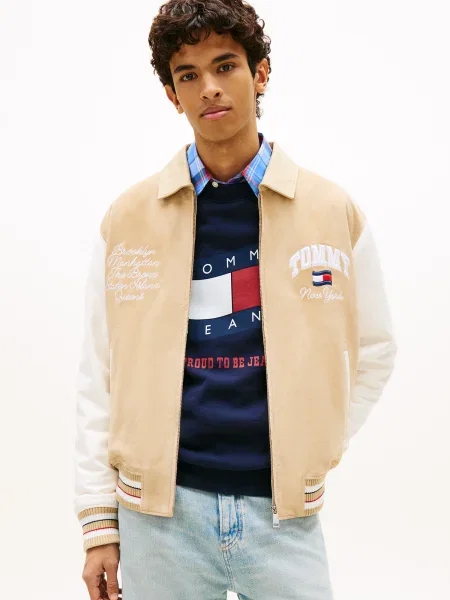 Tommy Jeans Prehodna jakna BEST VARSITY mornarska / živo rdeča