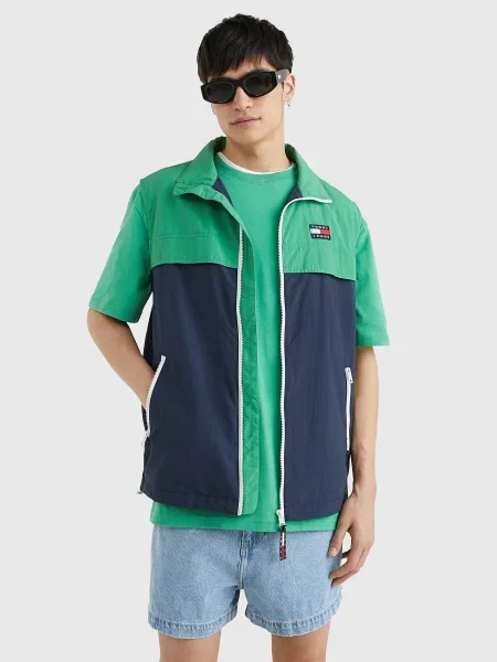 Tommy Jeans Brezrokavnik HERITAGE mornarska / limeta / rdeča