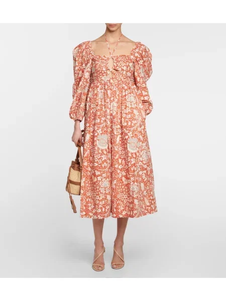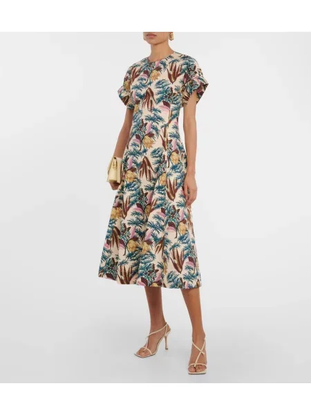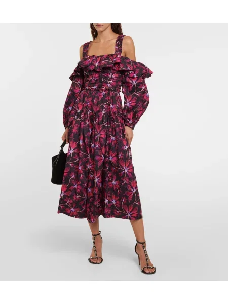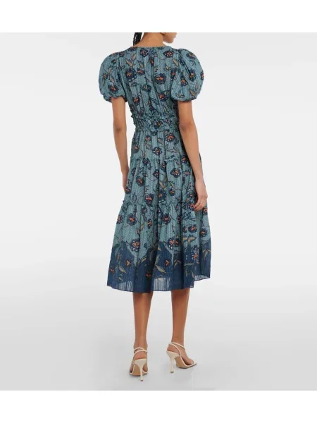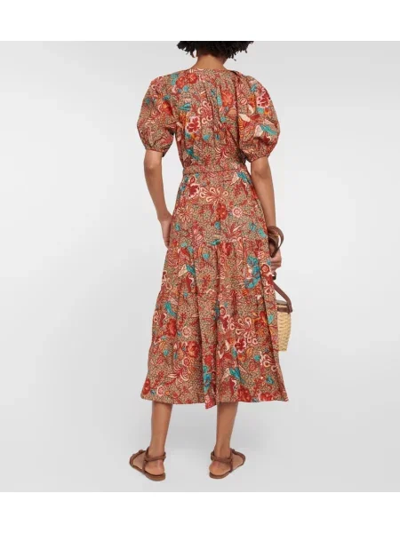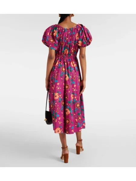 Ulla Johnson Midi obleka s cvetličnim vzorcem poplin