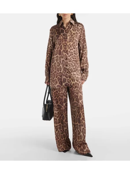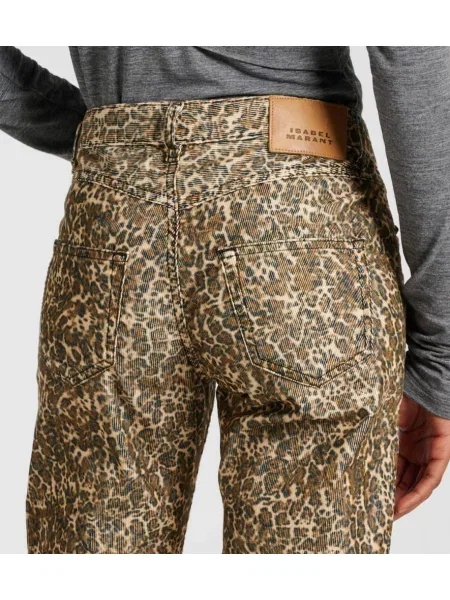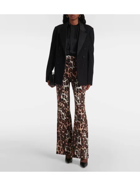 Chloe Hlače z razširjenimi rokavi iz rebrastega žameta s potiskom z leopardjim vzorcem