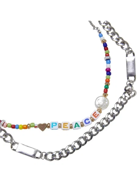 Urban Classics Verižica Peace Bead zelena / oranžna / rdeča / srebrna