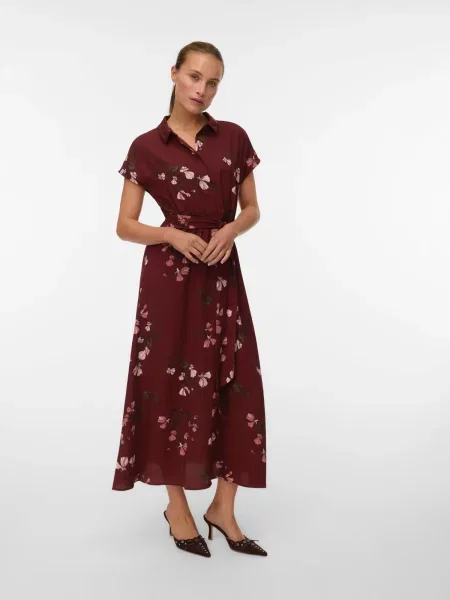 Vero Moda Dolga srajca VMNEWHALLIE temno zelena / roza / karminsko rdeča